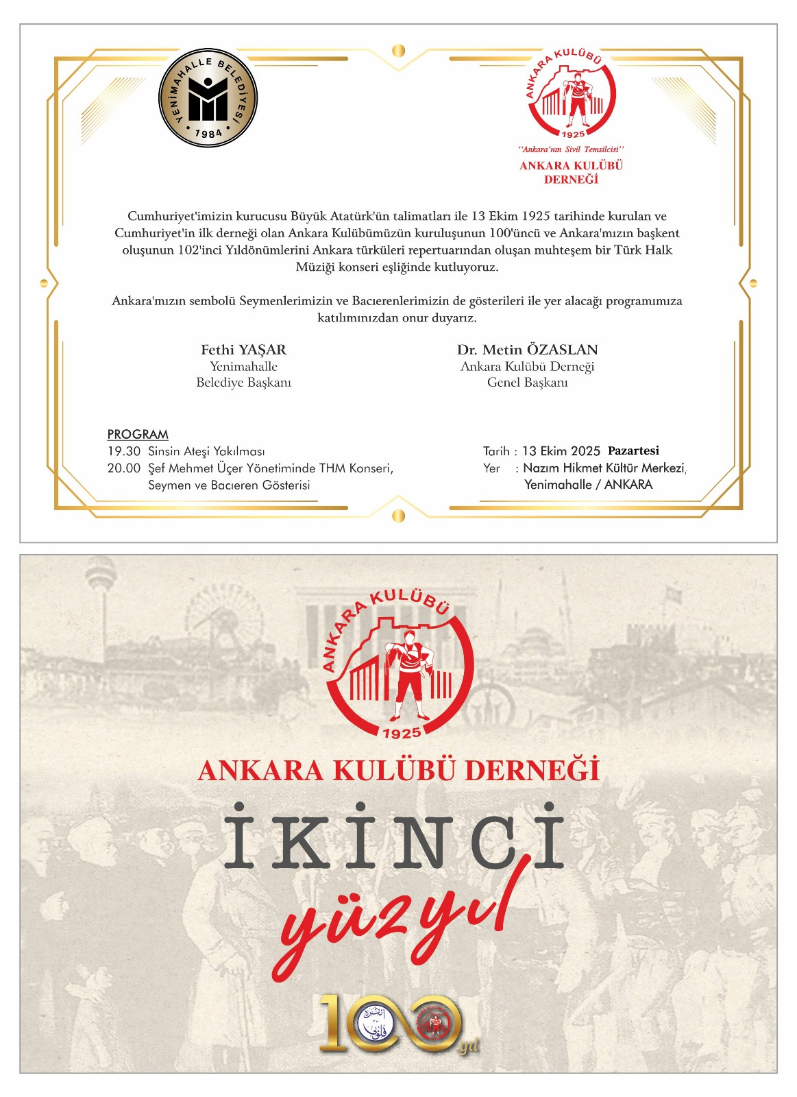 Yenimahalle Belediye Başkanı Fethi Yaşar ve Ankara Kulübü Derneği Genel Başkanı Dr. Metin Özaslan'ın ev sahipliğinde, Yenimahalle Belediyesi ve Ankara Kulübü Derneği iş birliğiyle düzenlenen bu anlamlı geceye tüm halkımız davetlidir.
